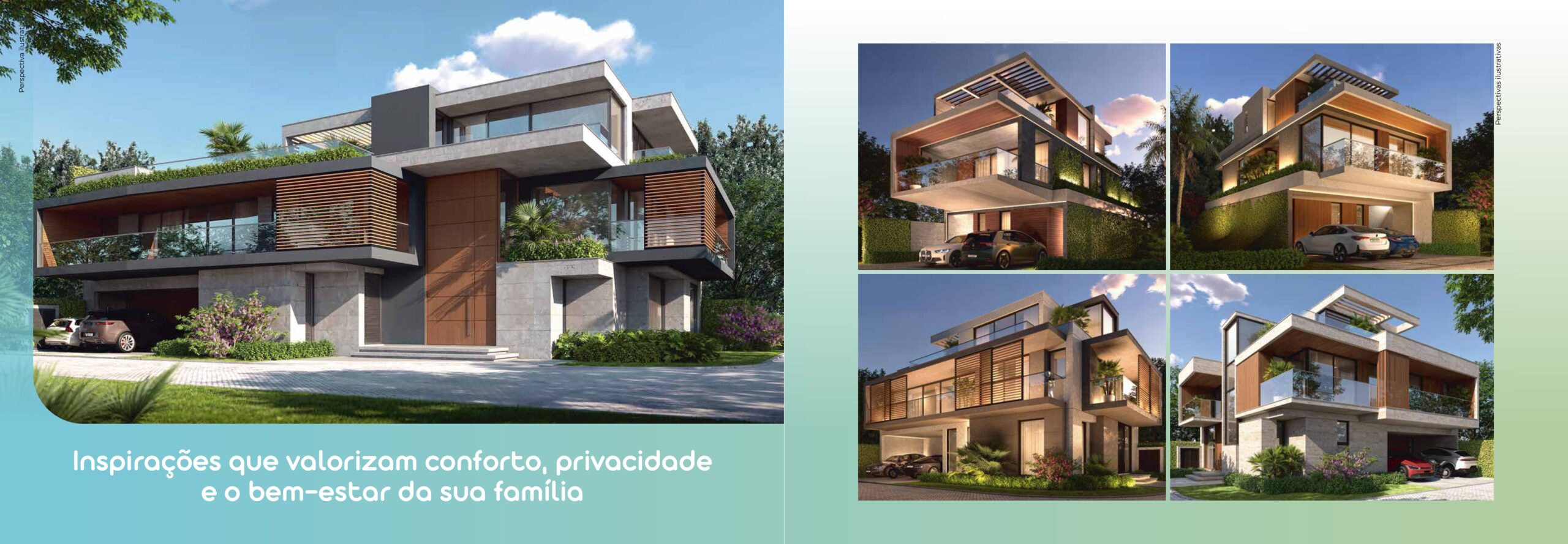 Casas com arquitetura e conceitos contemporâneos, sempre obedecendo os padrões e regras urbanísticas estabelecidos na CONVENÇÃO DO CONDOMÍNIO.